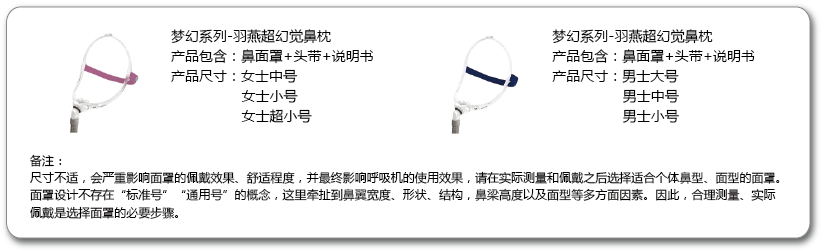 当使用任何一款面罩均出现较为严重的漏气时,可尝试使用此款鼻枕